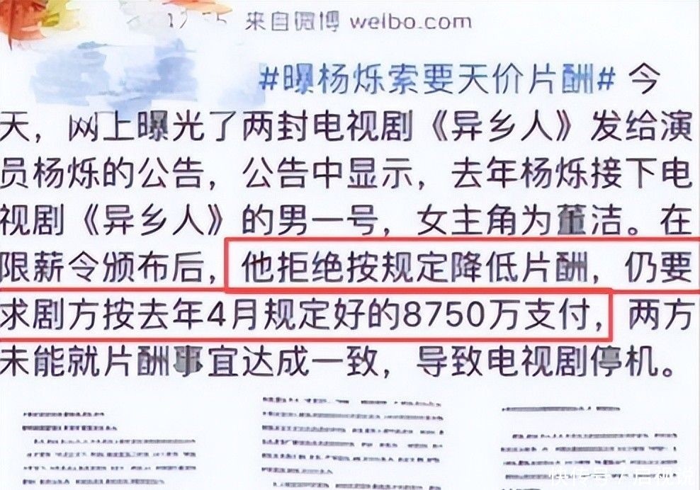 偏偏在这个节骨眼上,网上爆出杨烁拒绝降低片酬、坚持索要8750万元的消息。